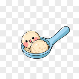 插画小女孩趴在勺子里的汤圆上免抠元素