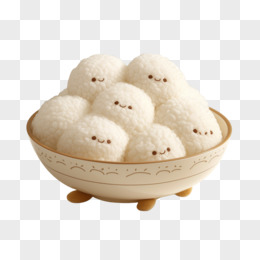 3D插画毛绒春节新年物品元宵汤圆免抠元素