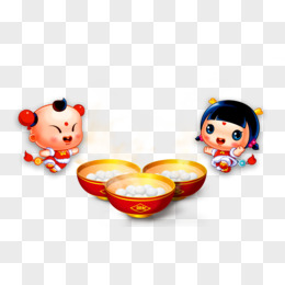 卡通手绘新年可爱小马吃汤圆免抠元素