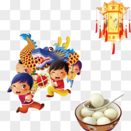 卡通手绘免抠手提元宵的小男孩免抠元素