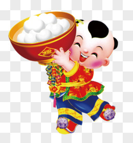 手绘卡通男孩女孩吃元宵免抠元素