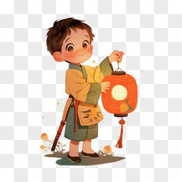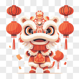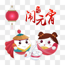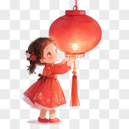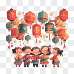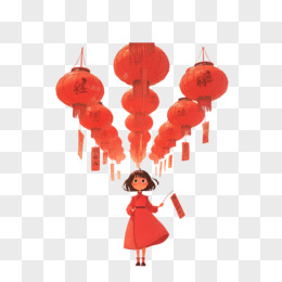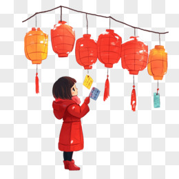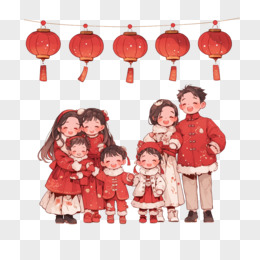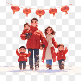 卡通一大家人穿着红色新衣服逛灯会免抠元素