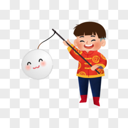 卡通手绘免抠手提元宵的小男孩免抠元素