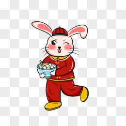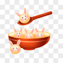 手绘卡通兔年小兔子抱着一碗汤圆素材