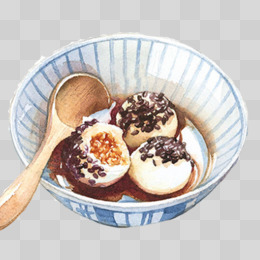 一组手绘插画勺子装单个汤圆套图合集元素三