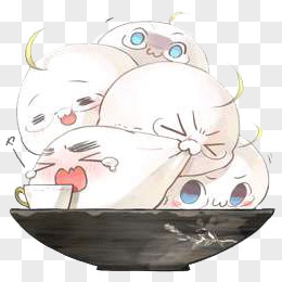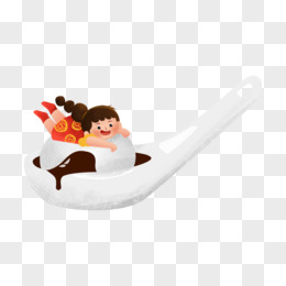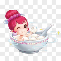 卡通手绘免抠女孩爬在汤圆上免抠元素
