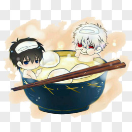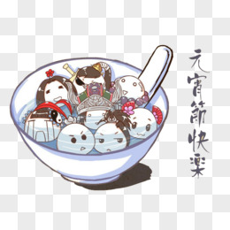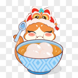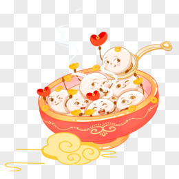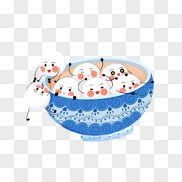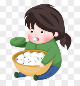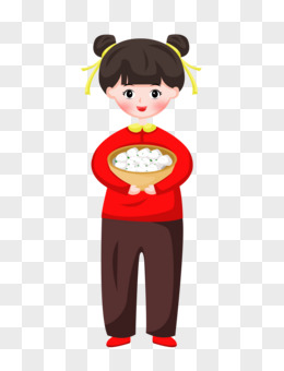卡通手绘免抠可爱的为小女孩捧着一碗汤圆免抠素材