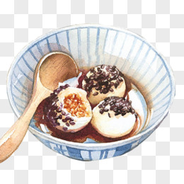 一组手绘插画勺子装单个汤圆套图合集元素二