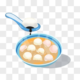 一组手绘插画勺子装单个汤圆套图合集元素一