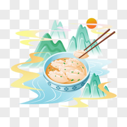 手绘冬至小女孩开心的吃饺子汤圆插画元素
