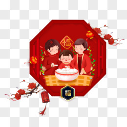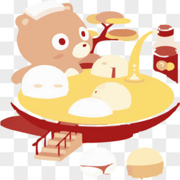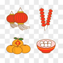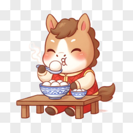 卡通手绘新年可爱小马吃汤圆免抠元素