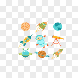 绿色板绘漫画太空星球科技宇宙探索元素免抠