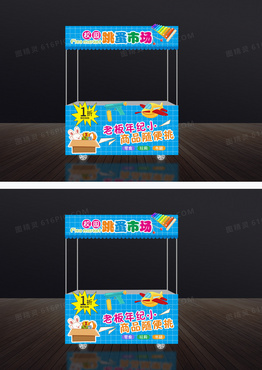 蓝色时尚校园跳蚤市场摊位设计跳蚤市场推车小吃车门头