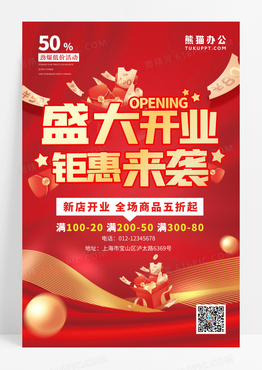 创意红金盛大开业钜惠来袭海报