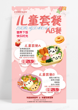 粉色可爱卡通儿童套餐ab餐餐饮儿童菜单美食手机宣传海报