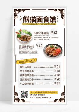 大气中式线条中国风拉面美食套餐优惠菜单手机海报