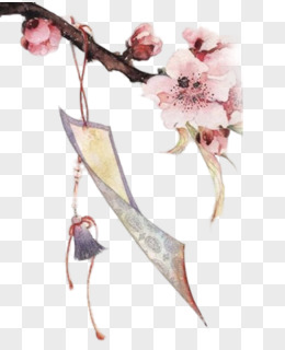 卡通风七夕桃花树和红色鹊桥免抠元素