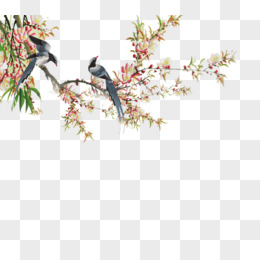 一组手绘四季系列古风人物之手拿桃花枝的少女素材