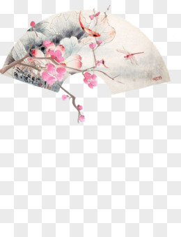 春天桃花扇子手绘水彩小清新扇子插画元素海报ppt