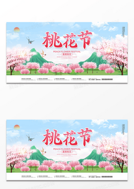 简约大气时尚醉美桃花桃花节旅游宣传展板