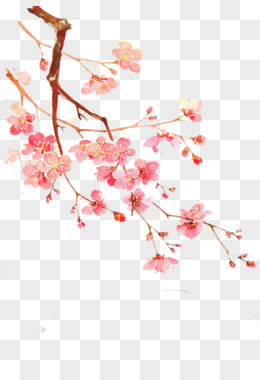 手绘桃花枝装饰元素