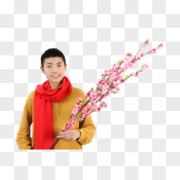 新年男生手拿桃花祝福拜年人物元素
