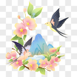 桃花燕子花鸟迎春组合免抠元素