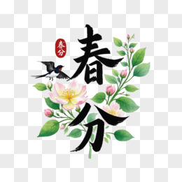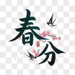 春分毛笔字桃花燕子免抠元素