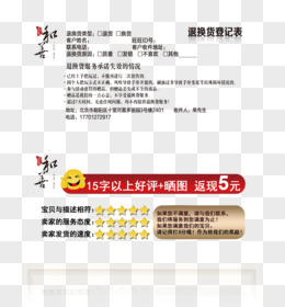 淘宝退换货登记表好评返现