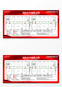 红色白色创意简洁商务风消防疏散图消防安全逃生通道展板