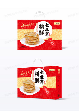 红色金色黄色喜庆简约大气老北京桃酥礼盒包装