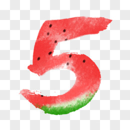 水彩西瓜数字5手写字设计