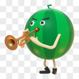C4D绿色拟人水果西瓜吹小号3D元素