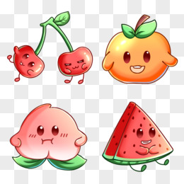 一组卡通手绘拟人水果套图