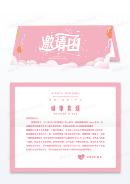 浪漫唯美粉嫩桃心情侣结婚邀请函模版