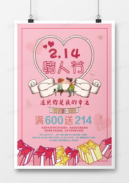 时尚粉色214情人节海报