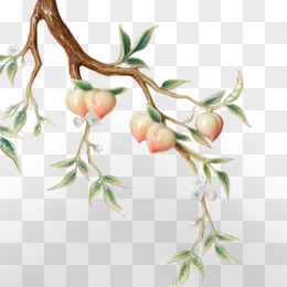手绘树枝上的桃子插画免抠元素