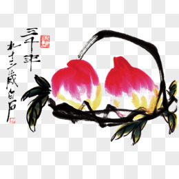 水墨画桃子素材
