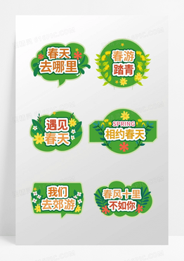 一组矢量春季春天春日踏青出游拍照手举牌原创元素合集元素