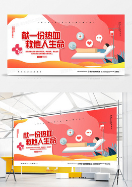 扁平化简约疫情防控献一份热血救他人生命公益宣传展板设计