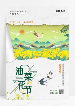 简约油菜花田旅游节宣传海报春天油菜花