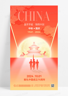 创意渐变中秋国庆兔子月亮军人天坛节日宣传海报