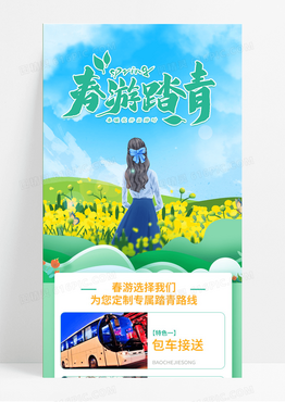 小清新插画风春游踏青指南油菜花田赏花绿色简约长图