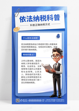 依法纳税税天秤书人物蓝色渐变手机海报平面海报设计手机海报