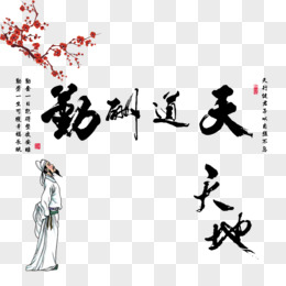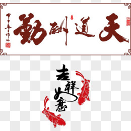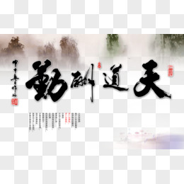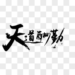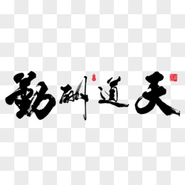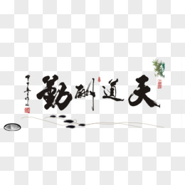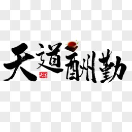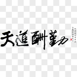 手绘免抠天道酬勤字画书法素材
