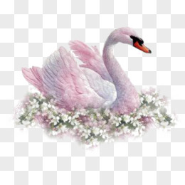 手绘单只蓝粉色梦幻天鹅戏水素材