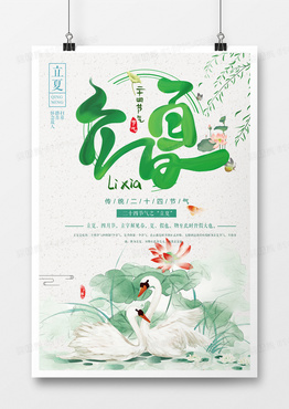 可爱卡通天鹅绿色创意简约扁平中国风传统节气立夏海报