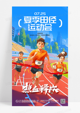 插画田径运动会全民健身赛跑奔跑冲刺海报