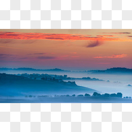 红色天空晚霞山峰