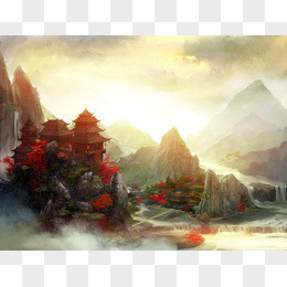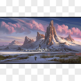 彩绘立绘风格雪山环境渲染天空效果